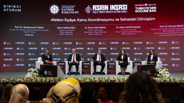 İletişim Başkanlığı Konferans Salonu'nda gerçekleştirilen, Ankara Üniversitesi Uygulamalı Bilimler Fakültesi Öğretim Üyesi Prof. Dr. Abdulmenaf Turan moderatörlüğündeki panelde, İçişleri Bakan Yardımcısı Münir Karaloğlu, Ulaştırma ve Altyapı Bakan Yardımcısı Ömer Fatih Sayan, Aile ve Sosyal Hizmetler Bakan Yardımcısı Sevim Sayım Madak ile Cumhurbaşkanlığı Yerel Yönetim ve Afet Politikaları Kurulu Üyesi ve Kandilli Rasathanesi Deprem Araştırma Enstitüsü Jeofizik Anabilim Dalı Öğretim Üyesi Prof. Dr. Nurcan Meral Özel konuşmacı olarak yer aldı.