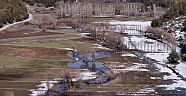 Taşkın nedeniyle ormanlık alanlar ile bazı araziler su altında kaldı.
