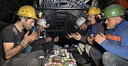 Baretlerinin ışığının aydınlattığı ocak içinde ilk sahurlarını yapmanın heyecanını yaşayan maden işçileri, yanlarında getirdikleri domates, salatalık, soğan, biber, peynir, zeytin, konserve ve ekmeği kömürden kararmış elleriyle yedi.